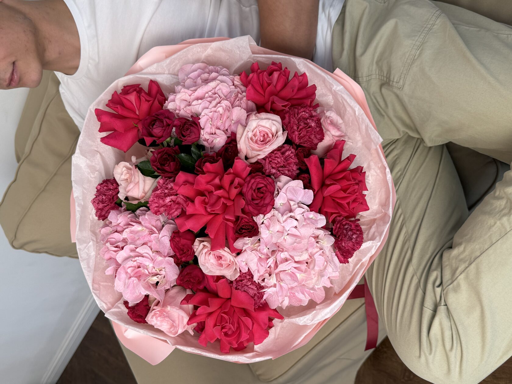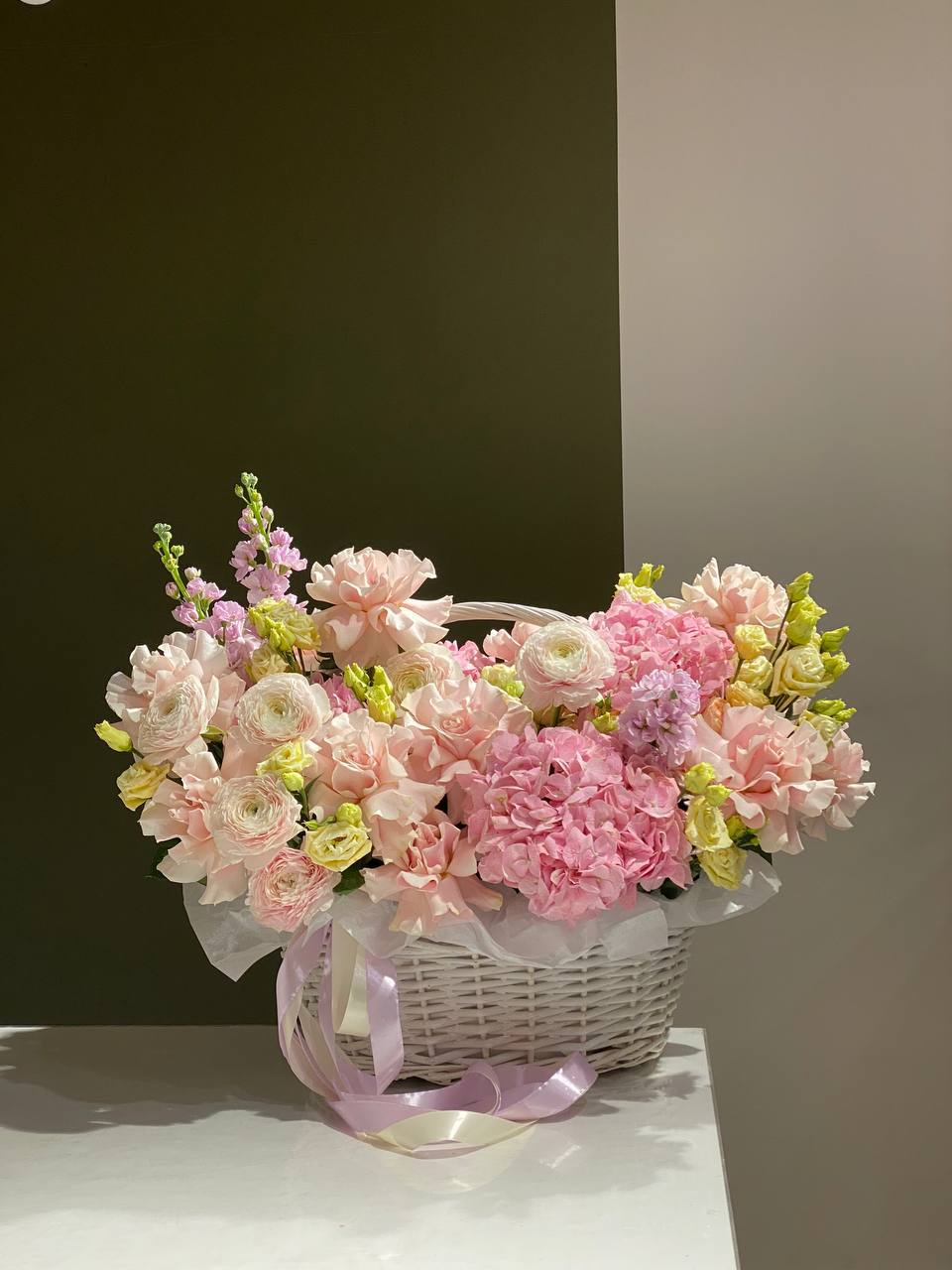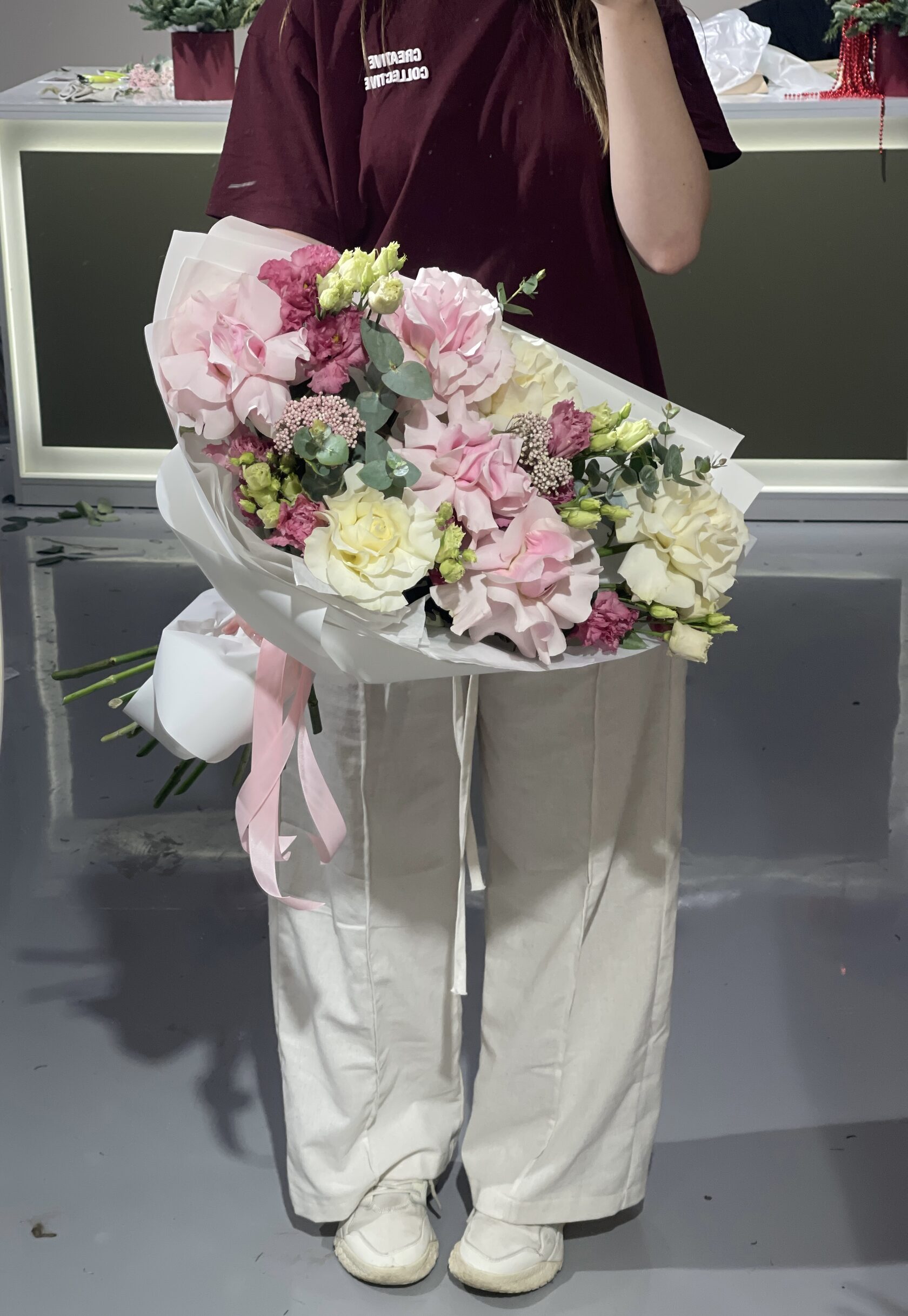 Состав: гортензия, розы, малина,эустома
